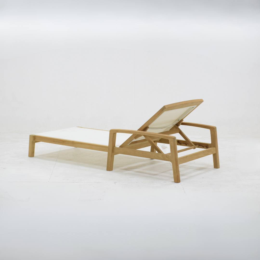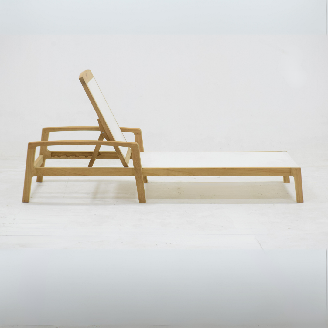 Introducing the Amed Sun Lounger, a stunning piece of furniture that embodies the laid-back elegance of Bali. Handcrafted by local artisans, this lounger features a beautiful frame made from fine sanded teakwood, showcasing a rich brown finish that adds warmth and sophistication to any outdoor space. The contrast of the crisp white padding invites you to sink in and soak up the sun, making it the perfect spot for sunbathing, reading your favorite book, or simply lounging while listening to your favorite tunes.