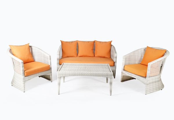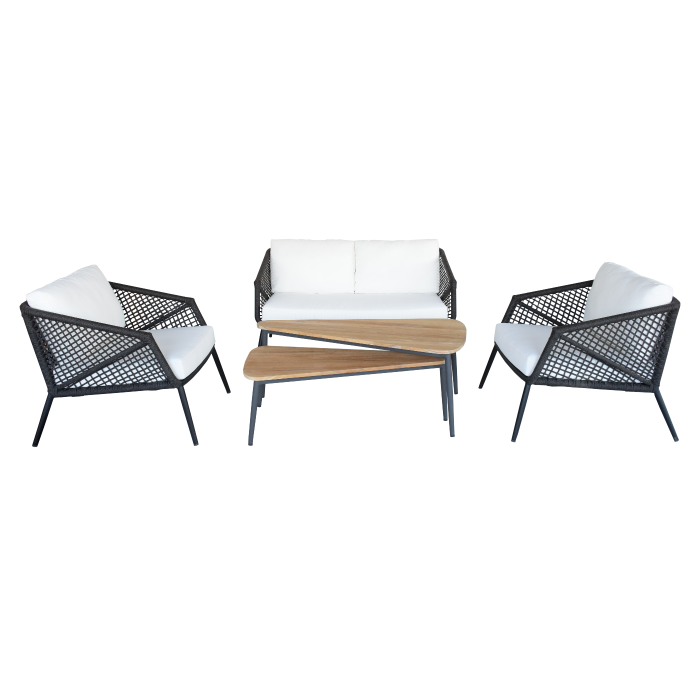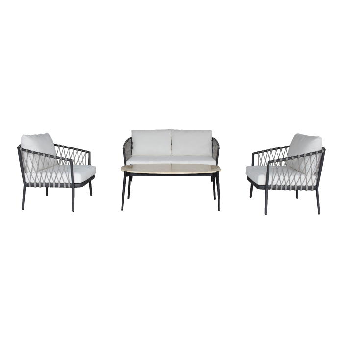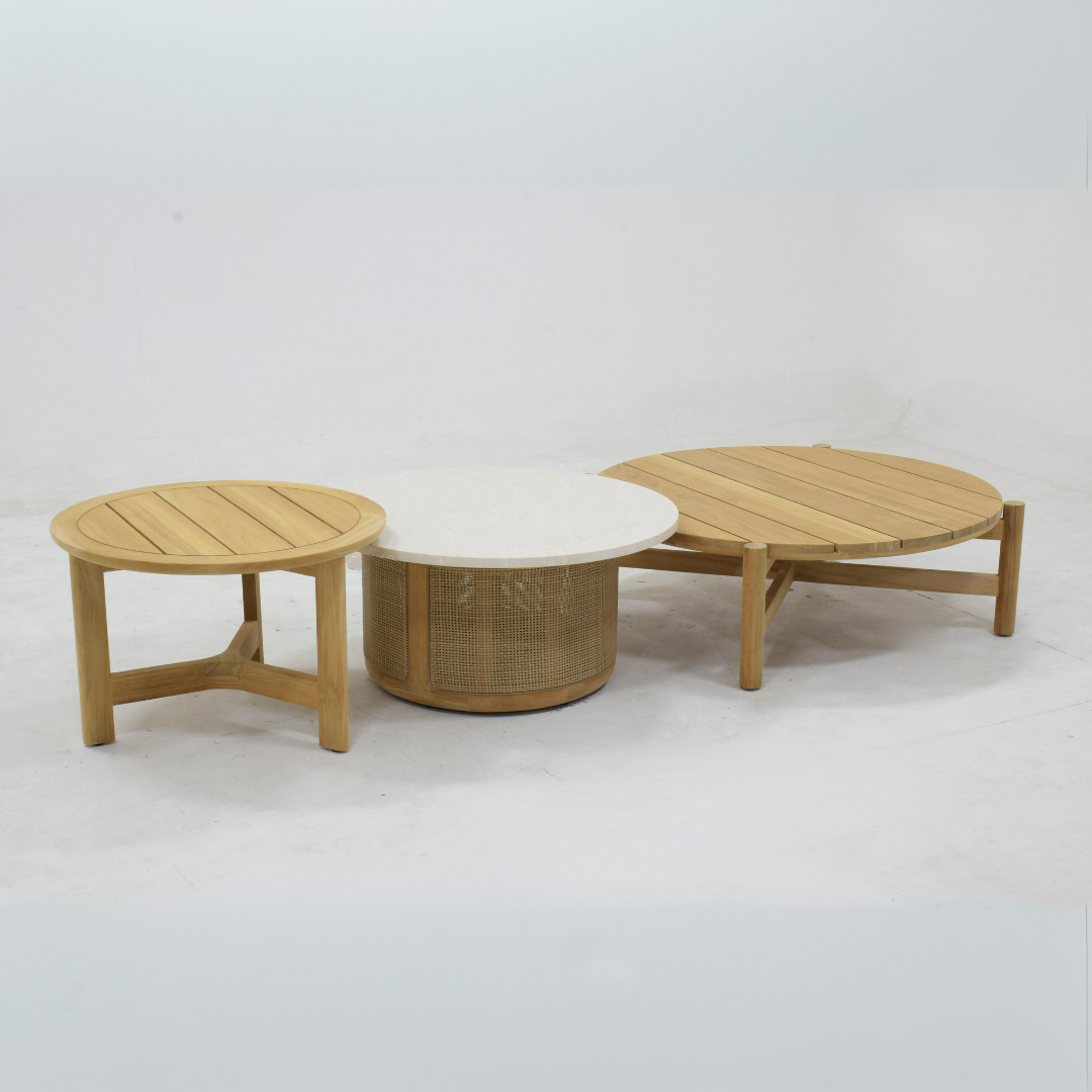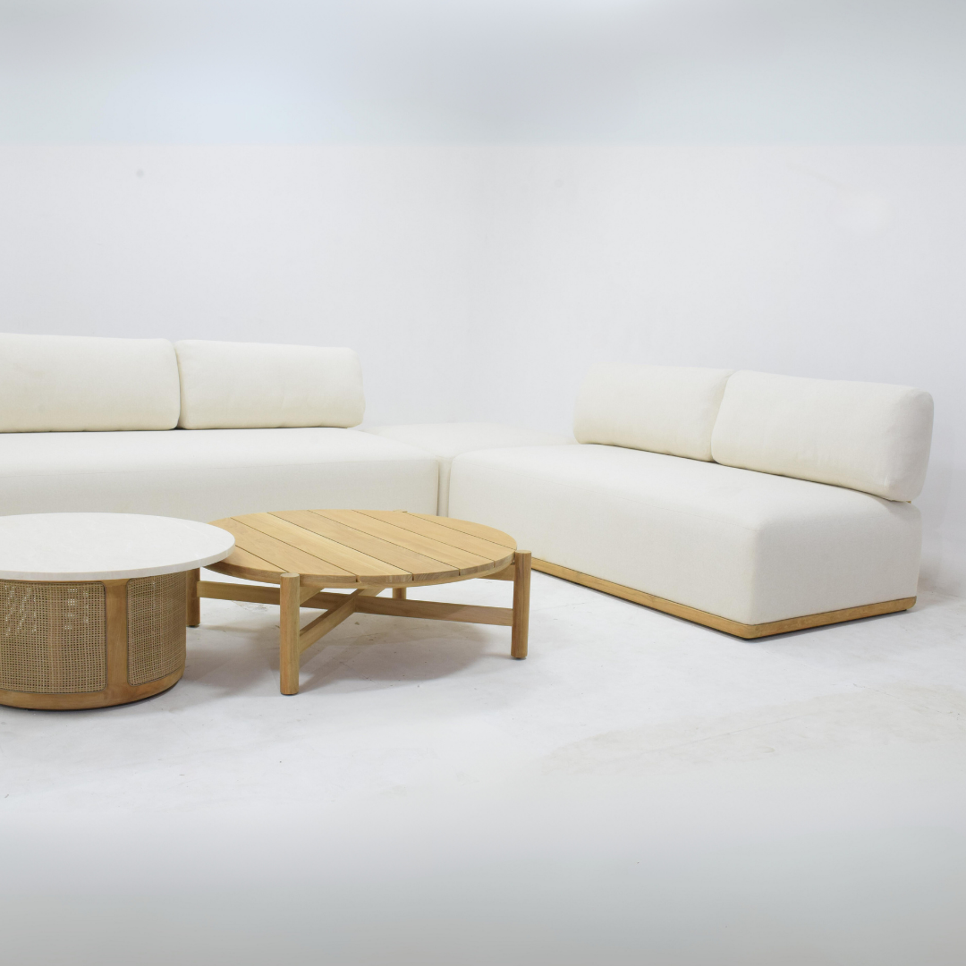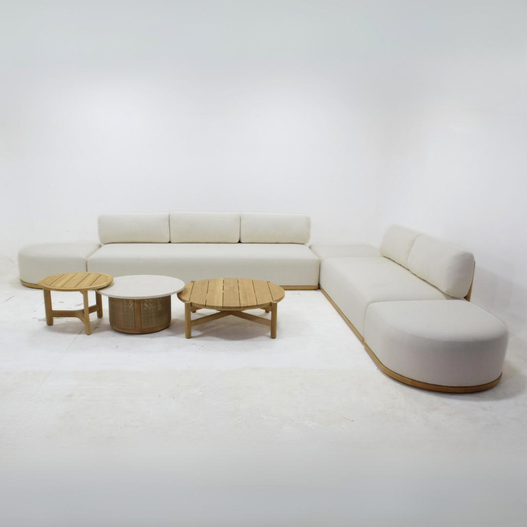 The Anatolia Sectional Set is an L-shaped sofa set that is suitable for placing in corners and outdoors. This sofa consists of 2 long sofas, 1 small sofa, and 3 round coffee tables.