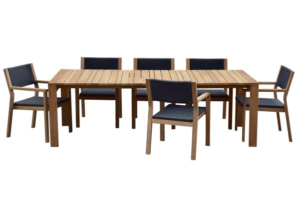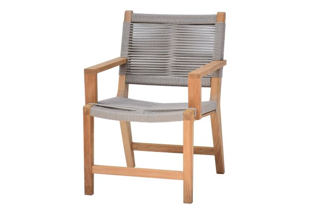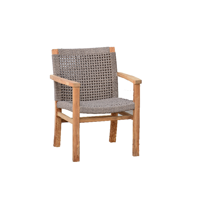 The color scheme of the Anfield Dining Set is understated yet eye-catching. The light gray all-weather rope used for the body of the chairs creates a soft, neutral backdrop, while the rich brown teakwood legs of the chairs and the table’s frame add warmth and a natural touch. This combination of colors brings an inviting, laid-back feel to your dining area, whether it’s in a cozy villa, a stylish home, or a trendy café. This minimalist yet pretty Dining Set is perfect for any occasion, whether you’re hosting a casual family gathering, a formal dinner, or a business meeting. Its timeless design complements a variety of décor styles, from rustic to contemporary, creating a space that feels both chic and welcoming.