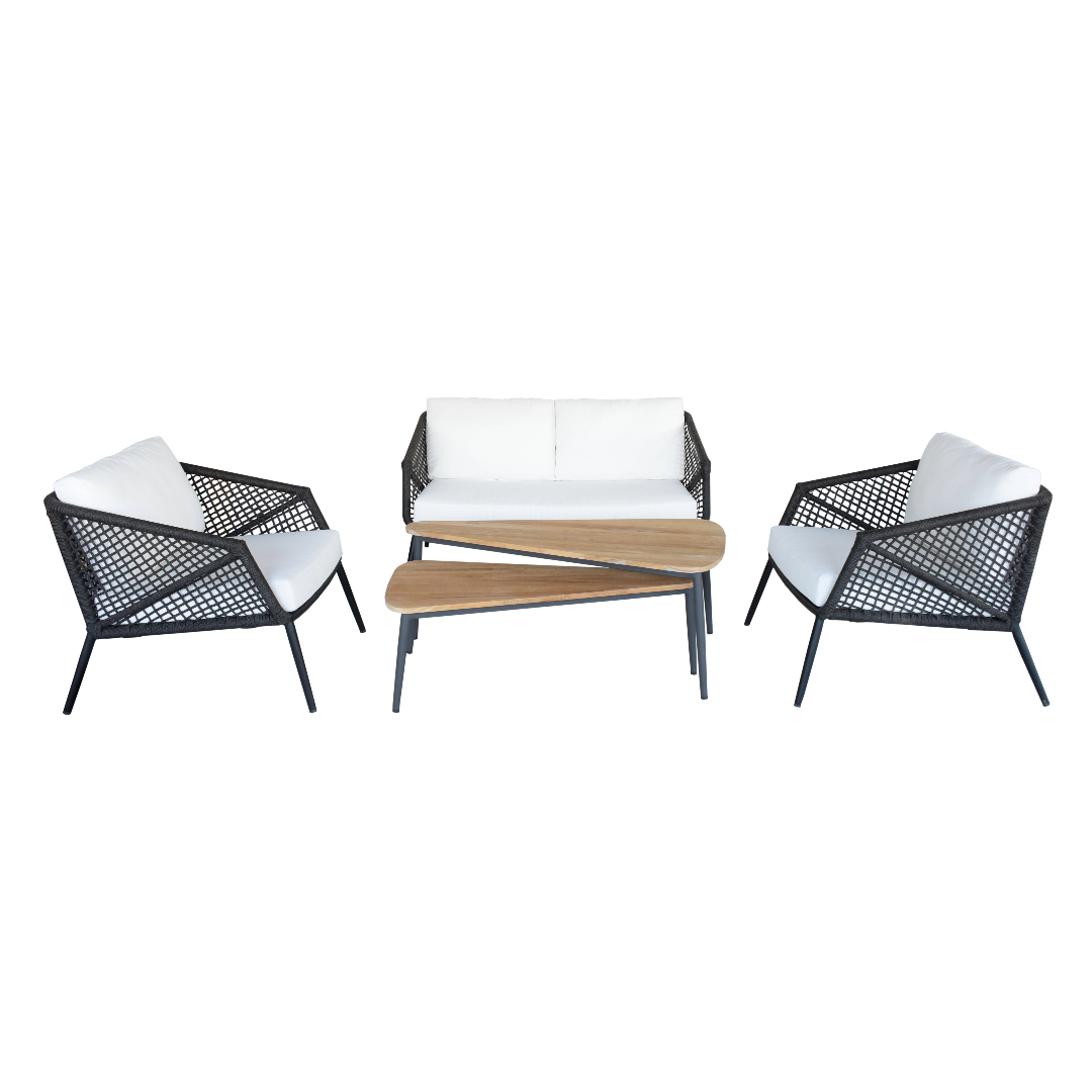 The Casablanca Sofa Set from Latif Living brings an unmatched blend of sophistication, durability, and comfort to your living space. Proudly crafted in Kediri, East Java, Indonesia, this set includes one table, one medium sofa chair designed for two people, and two single sofas, offering both style and functionality for any setting. The material combination of synthetic rope and powder-coated aluminum creates a sleek, modern look, while ensuring the structure remains sturdy enough for everyday use. The teakwood top of the table adds a touch of elegance, further enhancing the set’s luxurious appeal. This combination of durable materials makes the Casablanca Sofa Set a perfect choice for both indoor and outdoor spaces, able to withstand the elements while maintaining its stylish look.