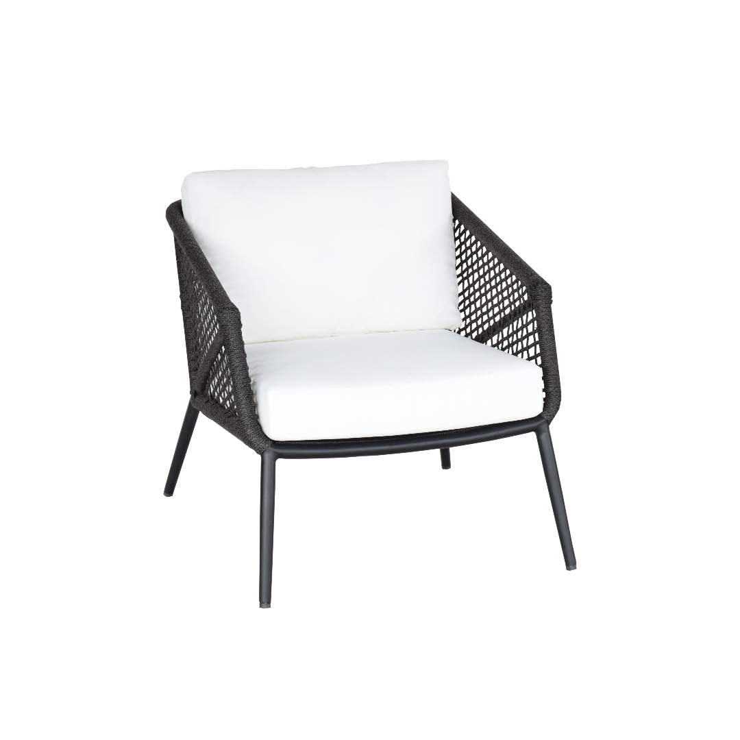 The color palette of the Casablanca Sofa Set is both timeless and chic. The black synthetic rope body of the chairs and the matching powder-coated aluminum legs provide a strong, contemporary foundation, while the soft white cushions offer a comforting contrast, creating a welcoming, relaxed atmosphere. Whether you’re enjoying a casual gathering, a formal meeting, or simply unwinding after a long day, this set is designed to provide both comfort and style. The Casablanca Sofa Set is ideal for villas, homes, or cafes, seamlessly fitting into any modern décor while elevating the overall look of your space.