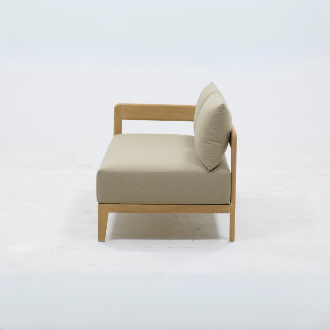 The teakwood frame, renowned for its durability and beauty, provides a sturdy foundation for the sofa and coffee table. The cushions, upholstered in Sunproof Ateja fabric, offer a luxurious and comfortable seating experience. This high-quality fabric is resistant to fading, staining, and water damage, making it ideal for outdoor or indoor use.