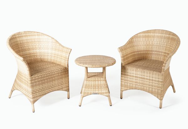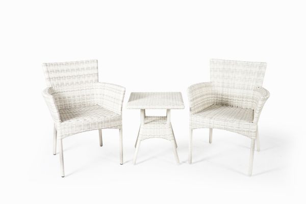 The design of the Maui Balcony Set is modern and timeless. Featuring sleek lines and a minimalist aesthetic, this set blends perfectly with any outdoor decor, whether a contemporary apartment balcony or a traditional patio. The set includes two armchairs with plush seat cushions as well as a stylish table, offering ample space for lounging and conversation.