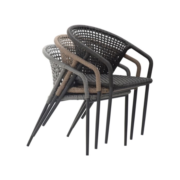 Available in three sophisticated color options—dark gray, brown, and light gray—the Rocky Dining Chair seamlessly blends with various interior or exterior design themes. Its neutral tones make it easy to pair with different types of dining tables, whether crafted from wood, glass, or metal. This adaptability ensures that the Rocky Dining Chair can complement both modern and classic decor styles.
