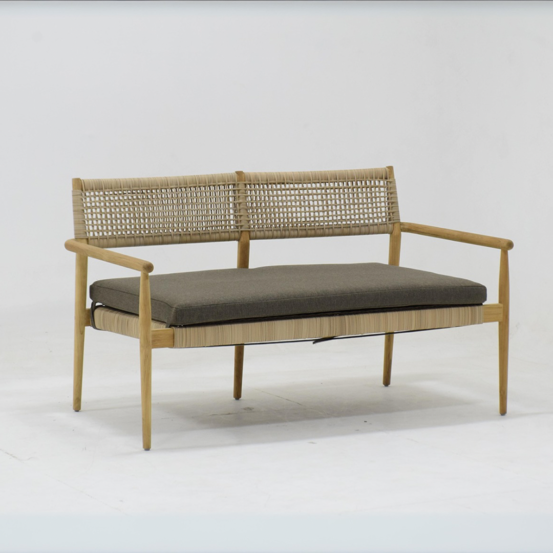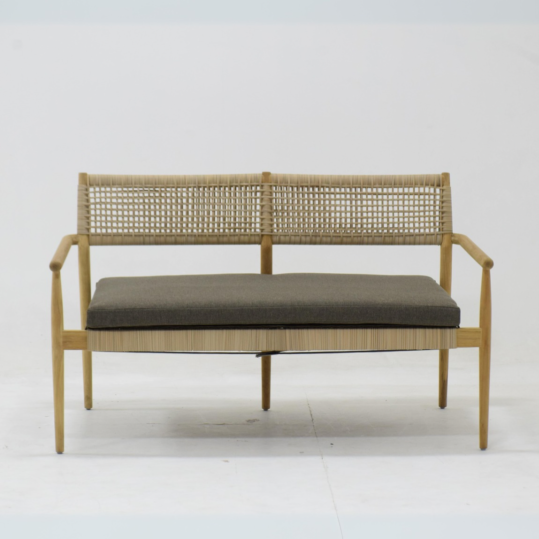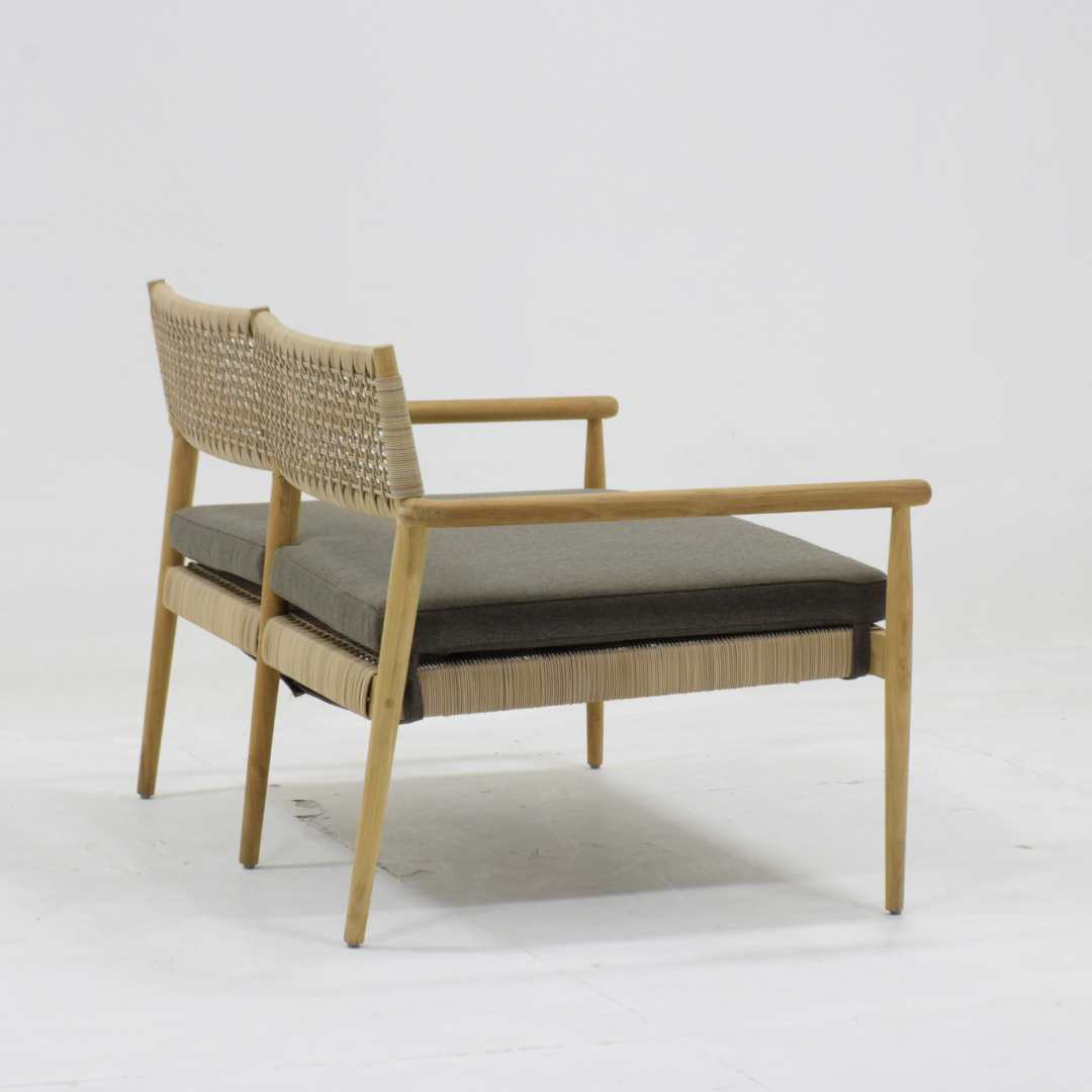 Crafted from fine sanded solid teakwood and round core wicker, the body of the sofa, including the armrests and legs, exudes a natural, organic charm while providing exceptional strength. The cushions, made from Ateja sunproof fabric, are 5 cm thick, ensuring a plush, cozy seating experience that is as comfortable as it is durable. The browny rope color of the body, paired with the olive semi-gray cushions, creates a harmonious and earthy color palette that brings a sense of tranquility to any space. Whether you’re enjoying a cup of coffee in the morning or hosting a lively conversation, the Sardinia Sofa Set 2 offers a relaxed and stylish environment.