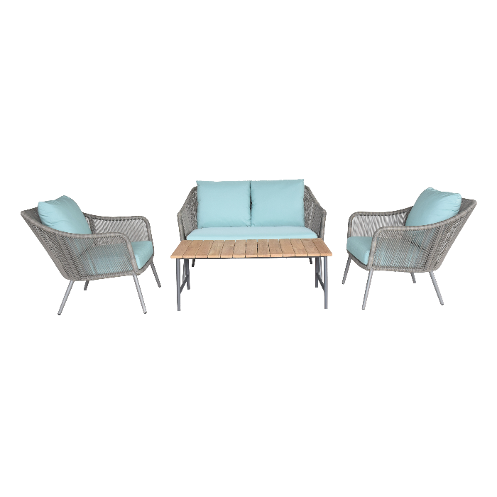 With its light gray body and legs paired with vibrant blue cushions, the Tobago Sofa Set effortlessly captures the refreshing essence of the ocean breeze, creating a serene and inviting atmosphere in any room. Whether you’re hosting a family dinner, working in style, or enjoying a casual gathering with friends, this set is the ideal choice for any occasion. The combination of teakwood for the table and the carefully chosen materials for the sofa set ensures that this collection will stand the test of time, offering durability that will last for years to come.
